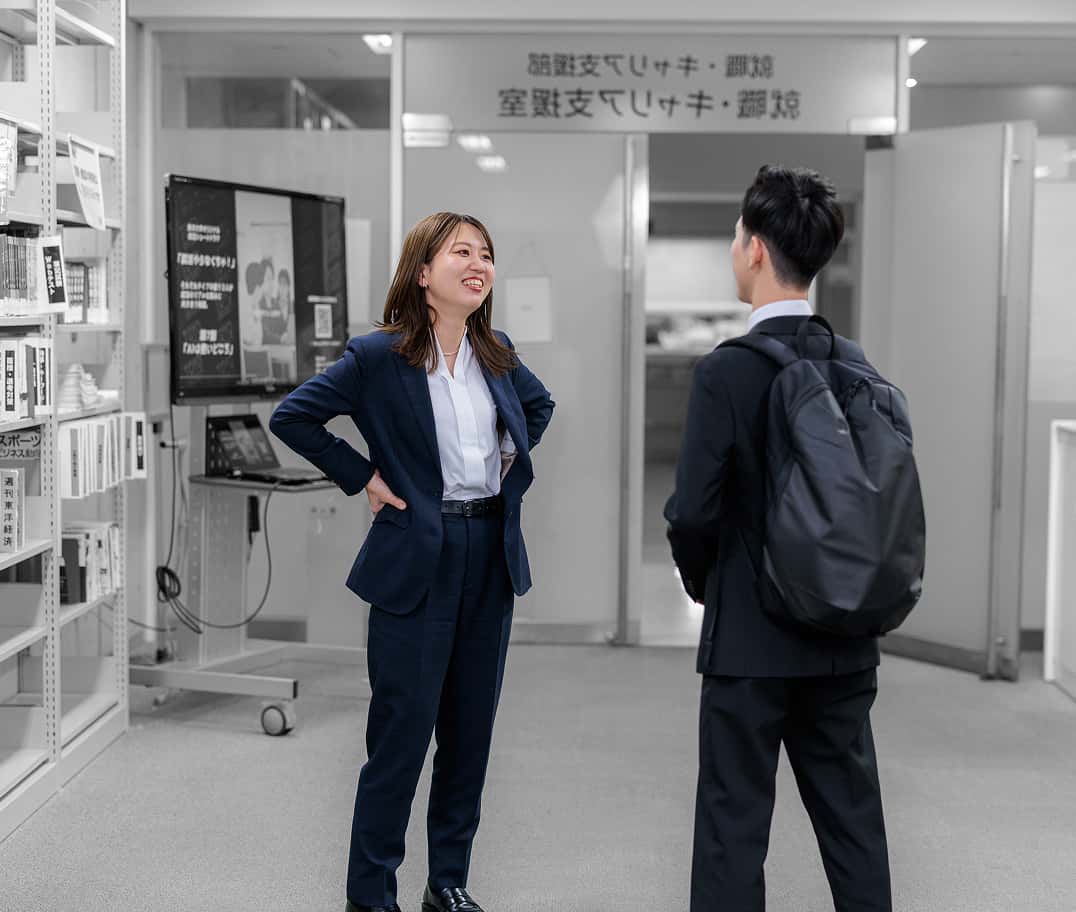 早期化する就職活動や、SNSをはじめとするインターネット上の膨大な情報の中で、迷いを抱えて進路選択に不安を感じる学生は少なくありません。東洋大学では、学生一人ひとりに丁寧に寄り添い、対話を重ねながら、その内に秘めた可能性を引き出すキャリア支援を行っています。また、低学年次から社会とつながる多彩なプログラムや企業説明会などを通して、働く意味や自身のありたい姿を考える環境を提供。日々の対話と実践的な経験の中で、自ら考え、行動する「主活力(主体的に活動できる力)」を育みます。そして、学生が不安を確かな自信に変え、思い描くキャリアをかなえて社会へ羽ばたくその日まで、支え抜きます。