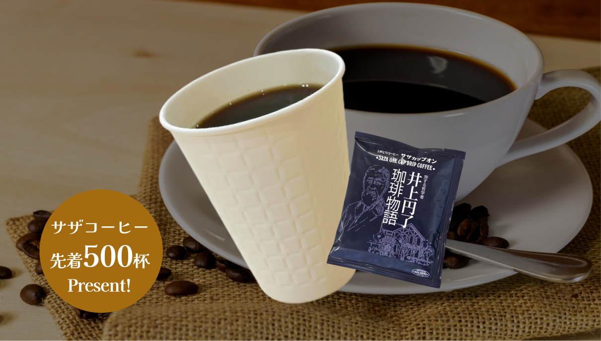 ㈱サザコーヒーロースターからのご提供により、共同開発した「井上円了珈琲物語」を先着500名様に無料でお楽しみいただけます。…