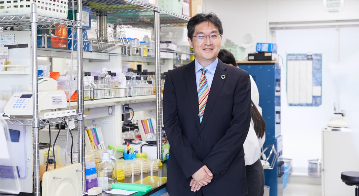 そしてこの考え方は、生命科学部の創設当初から現在に至るまで、大切に受け継がれてきた。例えば、アルカリ性の環境を好んで生育する微生物『好アルカリ性細菌』を発見し、世界に先駆けて学問として体系化したこの分野の第一人者であり、初代学部長を務めた故・掘越弘毅教授は、その研究により、コンパクト洗剤の開発やサイクロテキストリンの工業化など、数々の先端科学で社会実装に貢献し、日本ばかりではなく世界に極限環境微生物研究の功績を残してきた。