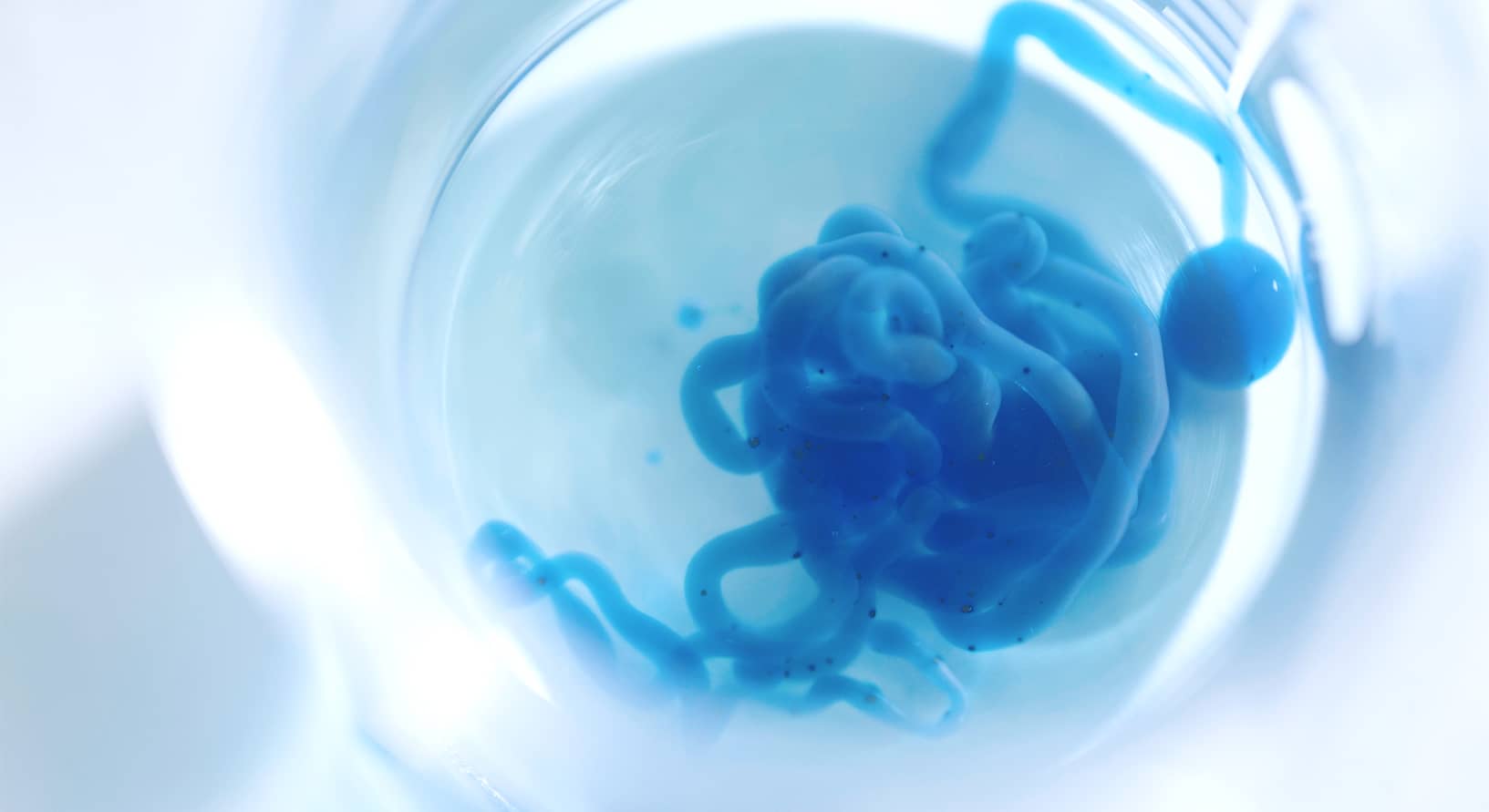 そこで開発が進められているのが、水中の貴金属イオンを捕捉し、その場で還元できる水溶性高分子材料です。この高分子は水溶液中で貴金属イオンを効率よく回収できる特性を持ち、条件によってはハイドロゲルとして利用することも可能です。こうしたゲル材料を用いることで、微生物を内部に保持しながら培養し、生成物とともに回収する新しい資源利用の仕組みも構想されています。