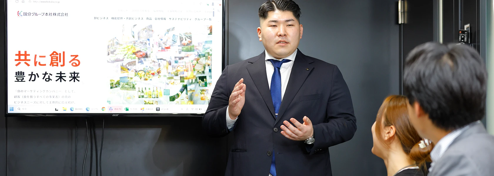 300年以上の歴史を持つ老舗食品・酒類の総合卸売業の国分グループ。私は全国転勤型のグループキャリアコースで国分グループ本社株式会社に入社し、現在は低温・チルド・生鮮の商材を専門的に扱う国分フレッシュ・フードトランス株式会社で営業担当として勤務しています。冷凍食品・アイスクリーム・チルド商品・生鮮食品の提案や、企業のプライベートブランド商品の提案などが主な仕事です。