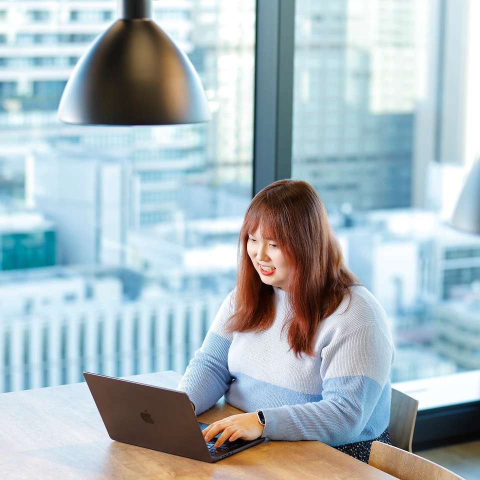 企業のIT基盤を支え、デジタル技術で社会の課題解決に取り組む日鉄ソリューションズ株式会社。私はUX/UIデザイナーとして、企業のシステムを制作するためのリサーチや、「使いやすい」というユーザー体験(UX)を提供できる設計、ユーザーインターフェース(UI)である画面のデザインなどを手がけています。