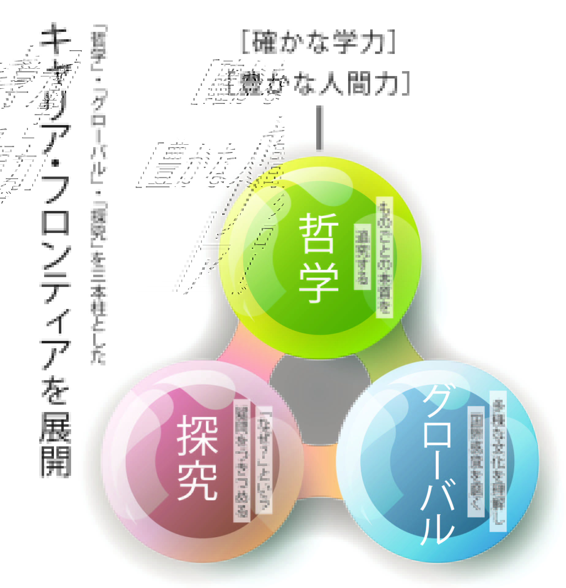 思考の種をまく「哲学講演会」、対話で深める「哲学対話」、論理を構築する「感想文・エッセイ」などの哲学教育を通して単なる知識の習得に留まらない「本質を見抜く思考力」これこそが、激動の時代を生き抜く力となり、難関大学入試を突破するリテラシーの礎となります。