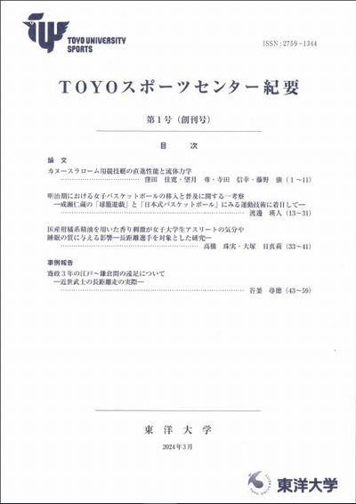 「マネジメントセクション」のミッションの一つに、「教職員・アスリート卒業生・アスリート大学院生のスポーツオールTOYOで紀要を発行し、研究発表を行うこと」があり、2024年3月に、『TOYOスポーツセンター紀要 第1号(創刊号)』を刊行いたしました。