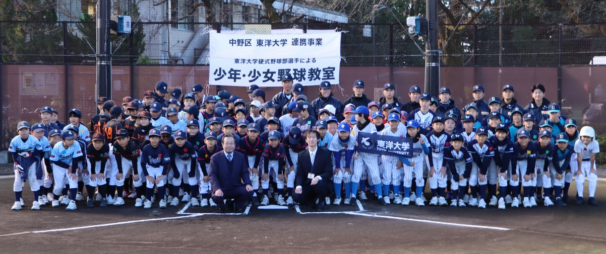 2024年11月24日(日)に中野区立哲学堂公園の野球場で、本学と東京都中野区の連携が連携した「少年少女野球教室」を開催しました。