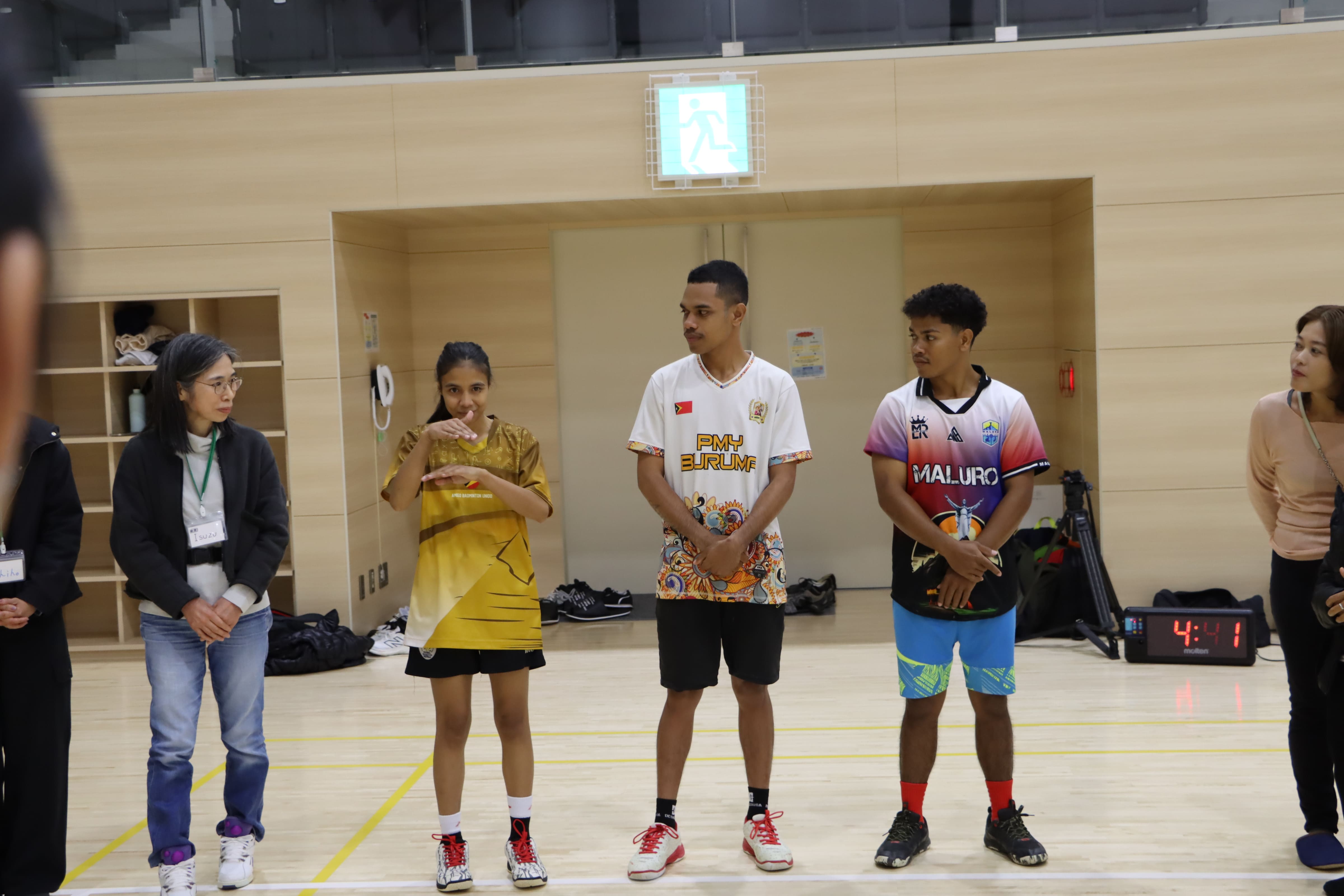 東京2025デフリンピックは11月15日(土)に開幕し、デフリンピックに東ティモール国籍の選手が出場するのは初めてです。大会に向け、選手3名とコーチ・スタッフ2名の計5名が事前練習の会場として13日(木)・14日(金)の2日間、赤羽台キャンパス体育館を使用しました。