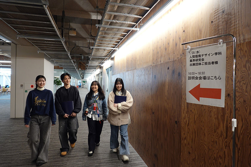 人間環境デザイン学科ではカリキュラム上は4年生からのゼミ体制となっていますが、実際には3年生の秋学期から「プレゼミ生」として各研究室に配属され、キャリア支援に関する充実したサポートを受けることができます。プレゼミ生には担当教員からの個別指導だけでなく、就職活動や進学準備で先行する4年生とも情報交換する場が得られるよう配慮されています。また、3年生の長期休暇中のインターンシップで単位取得ができるようカリキュラムも組まれており、各自の進路に対する動機付けや自己分析などへと繋げます。このように人間環境デザイン学科では、学生がスムーズな就職活動に入れるよう充実した環境を用意しています。