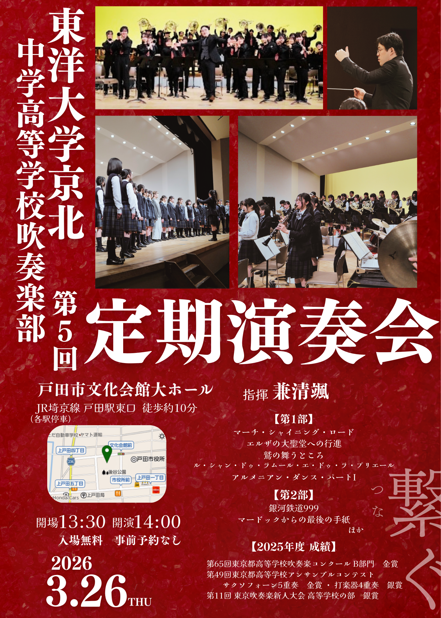 直前のご案内となり恐縮ですが、部員ご家族の皆様をはじめとしたご関係の皆様、また本校 吹奏楽部にご関心をお寄せいただいている皆様に、ぜひ本校 吹奏楽部の演奏をお聞きいただきたいと力を入れて練習をしておりますので、ぜひ足をお運びいただけますと幸いです。