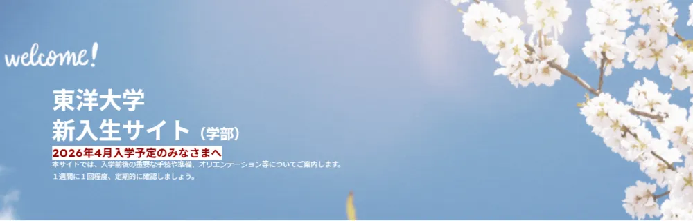 新入生の皆さん、ご入学おめでとうございます。東洋大学での出会いは、新たな挑戦と成長のきっかけに満ちています。多彩な経験を通して自分らしい未来への一歩を踏み出しましょう。
